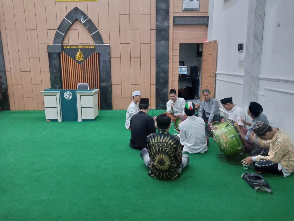 Surabaya – Pada Sabtu malam (16/12/2023) ba’da Isya, dari Ruang Taklim Sentra Dakwah Al Haromain Ketintang, Surabaya terdengar lantunan shalawat kepada Nabi Muhammad shallallahu alaihi wasallam. Para pemuda dari beberapa pesantren mahasiswa memainkan alat hadrahnya dengan padu mengiringi vokal yang melantunkan syair-syair sanjungan kepada Nabi. Kegiatan tersebut merupakan bagian pembuka Majelis Shalawat dan Taklim Sabtu Ketiga, kajian yang sudah rutin diselenggarakan Bidang Pembinaan Departemen Kemahadan Pembinaan dan Dakwah Yayasan Persyada Al Haromain. Setelah bulan lalu diisi dengan Khataman Kitab Jalau al-Afham Syarh ‘Aqidatu al-Awam bersama Abina K.H. M. Ihya Ulumiddin, kali ini kajian diisi dengan ngaji Kitab Fathu al-Qarib al-Mujib ‘ala Tahdzib al-Targhib wa al-Tarhib bersama K.H. Abdul Wahab Anshor.